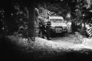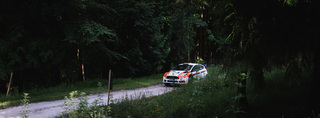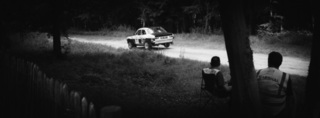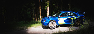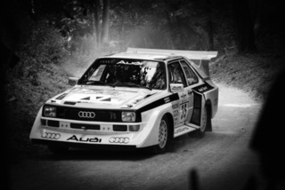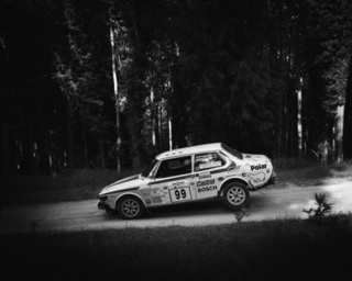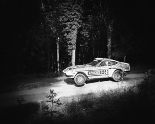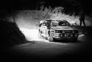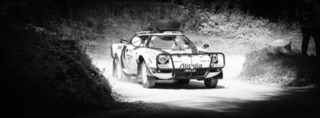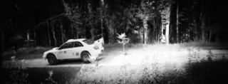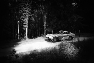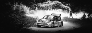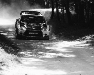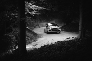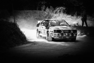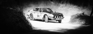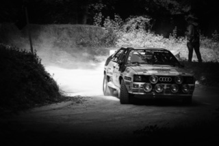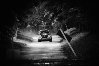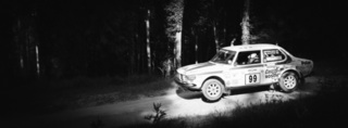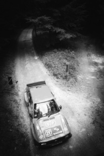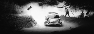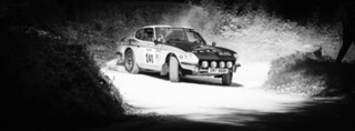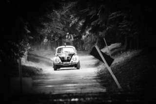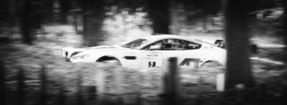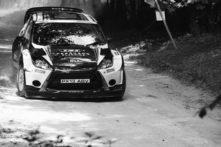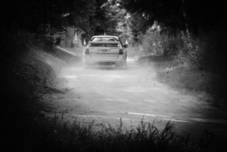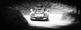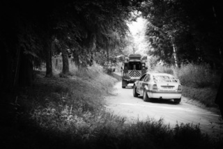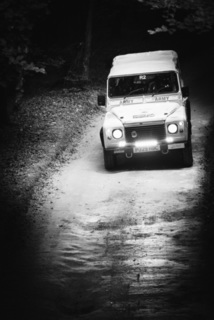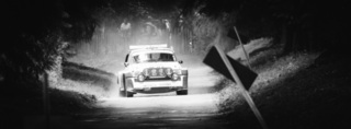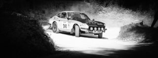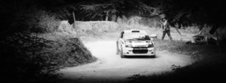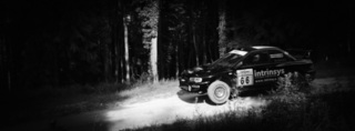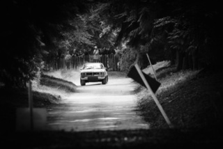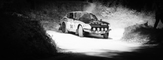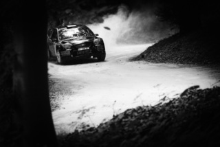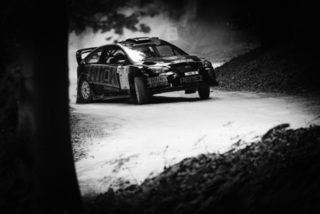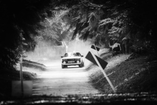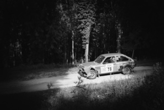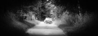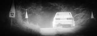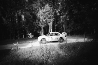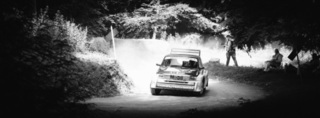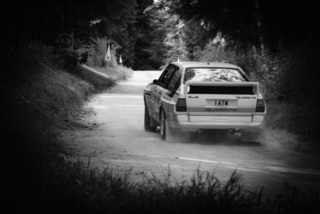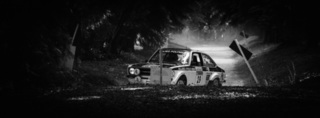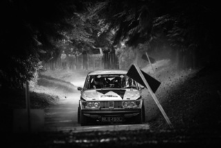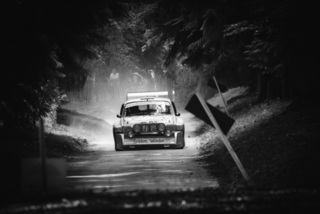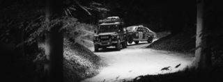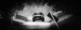 I've been on a bit of a black and white kick recently (triggered by a lovely rainy evening photo walk that suited Acros down to the ground) and I found a higher contrast, heavily vignetted version of my vintage racer preset gave me the right feel for these rally shots—it heroes the cars and really focuses you in on the central action, with the vignette working to help that close forest feel.