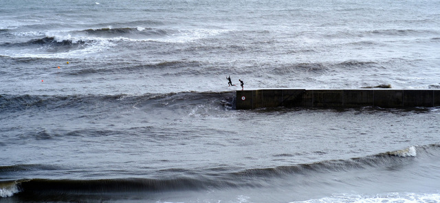 On a walk around the top of Cullercoats Bay last month, when the sea was stormy and the surf was up, I was treated to the sight of the life guards charging along the harbour wall and jumping into the roiling waves.
