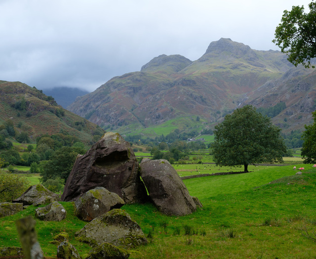 This first image is not of the more impressive boulders, but provides a nice backdrop (I think that's Stickle Ghyll you can see just above the tree on the right) and I liked this composition as there's a nice path through the image: from the boulders to the tree and further on to the mountain behind.