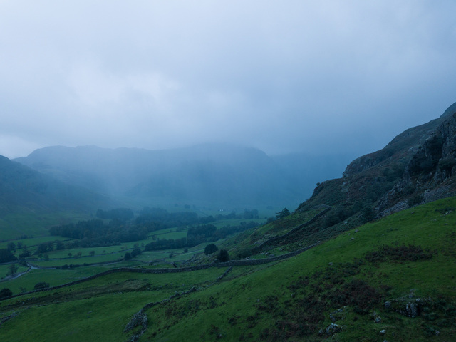 Next up is an image from just a little further down the road after I'd got back in the car. Coming round a bend, the view opened up and the rain and mist coming in provided some nice separation of the background.