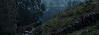 With the Mavic landed and packed away, the pair were on their way again and just below me: about to head over a small ridge on the path down to Sticklebarn.