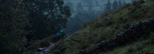 The bright rain covers over their backpacks acted as a nice pop of colour amongst the dark, rainy, muted surroundings so I focused in with the X-T2 and photographed a few frames as they approached the lip of the path before disappearing further down the mountainside and out of sight.