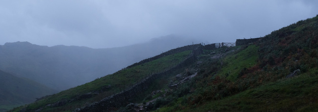 I'll leave you with one final photograph: a near-repeat of an image I made on my walk up that shows some of the change in conditions during the short 45 minutes I was there. The rain has come in, there's no more sharpness to anything and certainly not to the other side of the valley. The wisps of low cloud earlier are now a blanket of mist.
