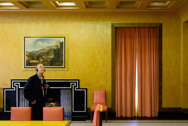 Today's photo is a quick snapshot taken at Eltham Palace earlier this year that I really rather like for one reason or another. I was attempting to just take a photograph of the room itself; to capture some of the geometry of the design and the mustard yellow, textured walls. As I framed up though, this gentleman walked by enjoying the scene and listening to the audioguide and it all just seems to fit.