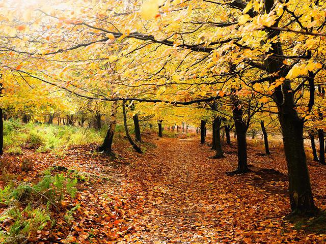 Once up the hill, I started along the path into the woodland for the second part of my plan for the day. The path here takes you under a very low canopy that creates a kind of tunnel effect and it’s here, looking back in the direction I came from, that I made this image of the lovely golden leaves on the trees and the more coppery carpet of leaves on the floor.