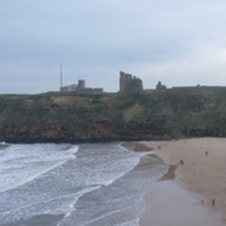 Otherwise, I still like the composition. The RNLI vehicles on the smooth sand below, with just a few nicely scattered beach goers; the cliff dividing the next section of beach round where you can pick out a whole group of surfers in the sea and the shoreline continuing to curve round to the top left where the haze nicely softens everything out.