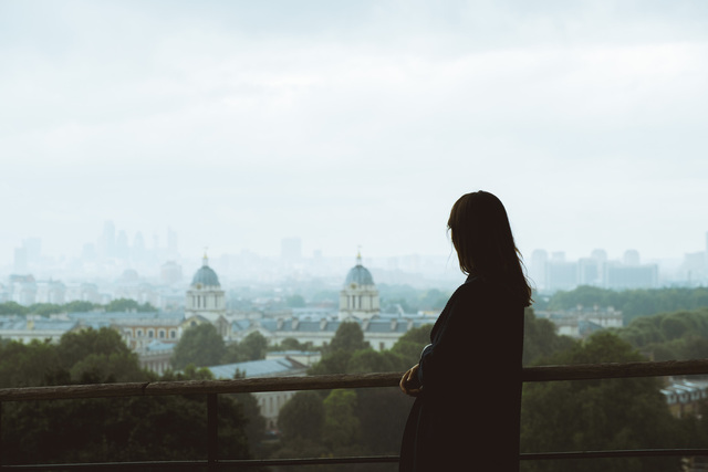 While the group got what shelter they could having turned up in summer clothing, the scene looked pretty cool so we decided to photograph a few of the guys individually looking out over Greenwich and towards central London. The rain rolling over the city created nice layering in the mist and it's hard to believe the photograph of Kendra above was taken just an hour after this one by Radek: