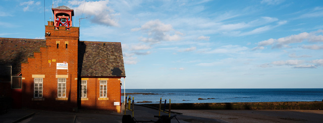 The red brick of the lifeboat station to our left created some nice shapes, with the shadow of the cliff behind creating a matching diagonal with the stepped roof line of the tower against the main roof and opening you out to the sea. The cinematic slice of vision you get from the 6x17 format is great for images like this and, while I hope to take a much better version of this photograph in future, I really like it as it is is. It's a good starting point and a scene logged to return to in future.