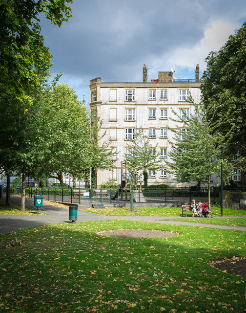 I'm not at all sure where I actually took this picture, but it seems to be somewhere between Maltby St. Market and Borough Market based on its order in the pictures I took that day. I do love some good contrasting light in my pictures and the clouds with a little rain in them provide a good frame along with the darker trees to focus you in on the brightly lit building and the lady sitting on the park bench with a pushchair.