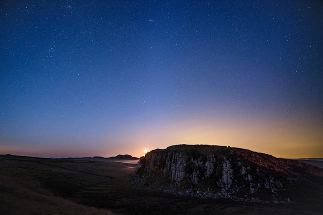 A mix of SkyView, Google Maps and The Photographer's Ephemeris apps had given us enough confidence to change locations and we eventually arrived in the dead of night. We could make out the still-impressive-looking sight of Steel Rigg after walking from the small car park so we found what seemed a good spot, set up our tripods and cameras, and took a first long exposure.